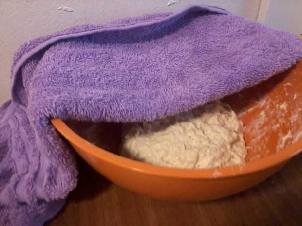Cubrir el recipiente con una toalla y ponerlo a fermentar en las mismas condiciones que el motor de arranque. Recuerde: no por debajo de temperatura ambiente y humedad ligera si lo tienes! Es necesario establecer hacia fuera durante 4-8 horas, hasta que ha triplicado en tamaño.