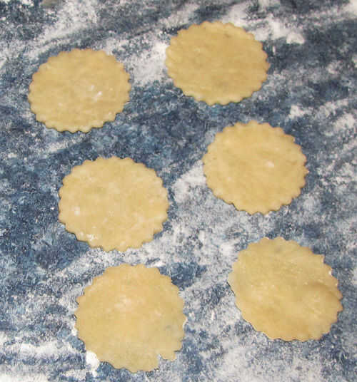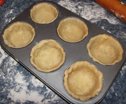 Siguiente, lugar de la masa redondos en a los bollitos, trabajar cada uno redondo en la forma de la Copa (si se desarrollan cualquier pequeños agujeros, fácilmente puede parchearles con un pedazo pequeño de la la masa de desecho).