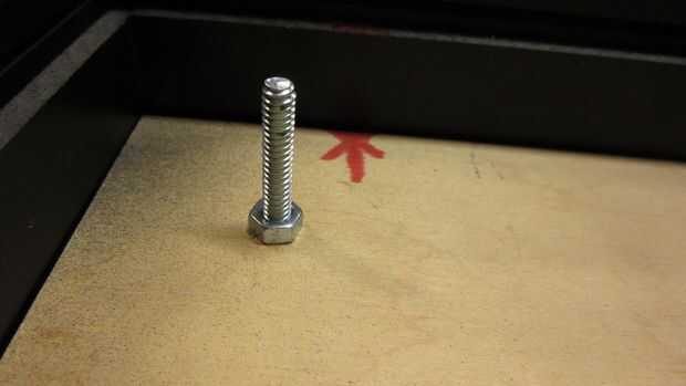 - Instale dos pernos alargados en las esquinas opuestas tal que sobresalgan por la parte trasera de doble fondo. Actúan como manijas.