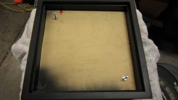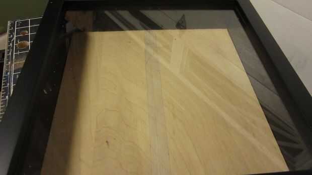 - Corte un pedazo de madera que encaja perfectamente dentro del shadowbox. Para mí eso fue aproximadamente 9.75 "x 9,75" x 1/8".