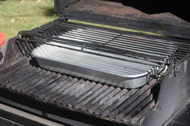 • Encontrar una bandeja o molde para hornear que se ajuste a su parrilla. Desea el quemador delantero a no ser cubierto por el pan.