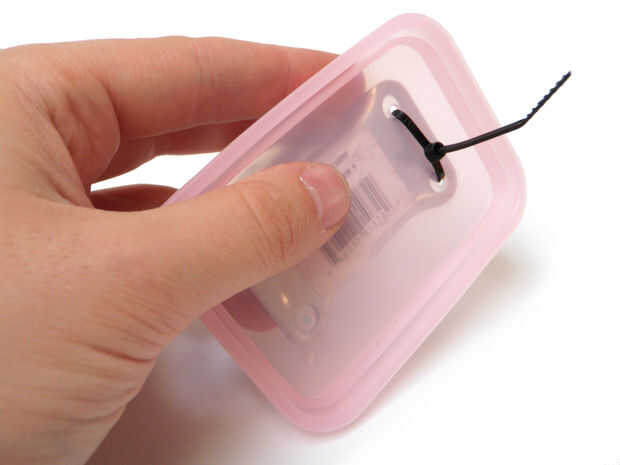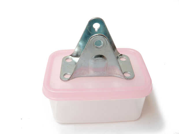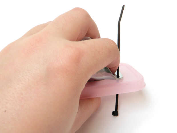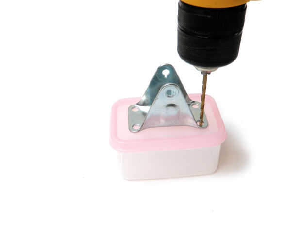 Utilice los agujeros de la rueda como guías para la perforación de agujeros de 1/8" en la tapa del envase.