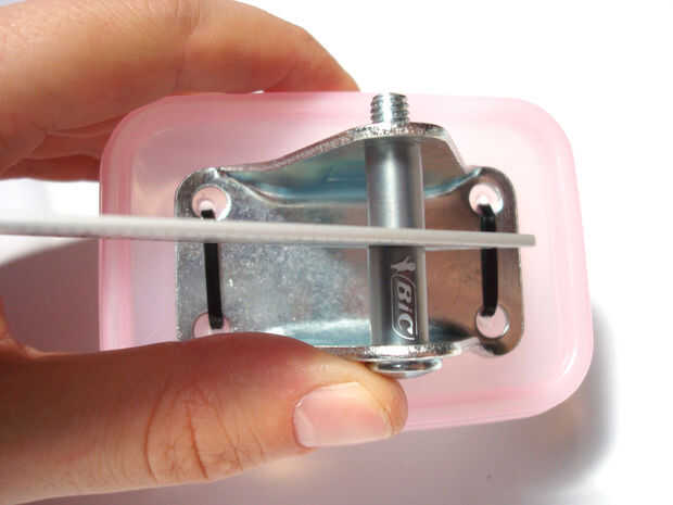 Básicamente, la regla debe tener un espaciador de pluma en cada lado para sujetarlo. Si parece borracho o flojas, inserte las arandelas de metal entre el separador y la regla hasta que no es.
