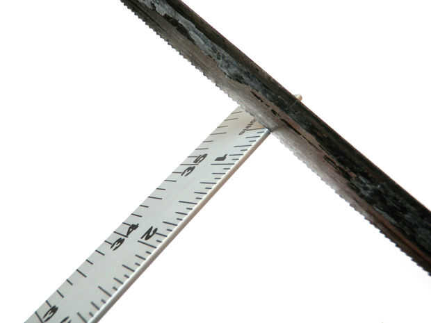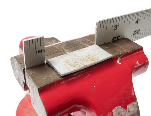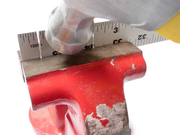 Coloque la regla en un tornillo de banco para que la parte inferior de los cortes están a nivel con la parte superior de la mordaza.