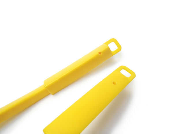Perforar un orificio de 1/8" hacia abajo la manija donde hiciste esta marca.