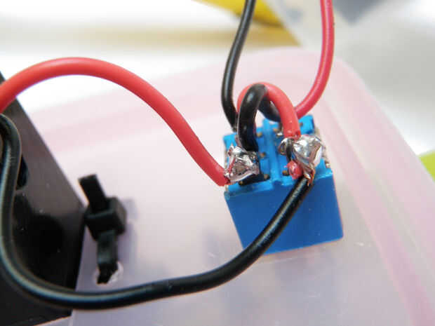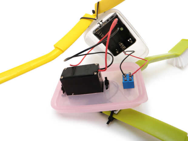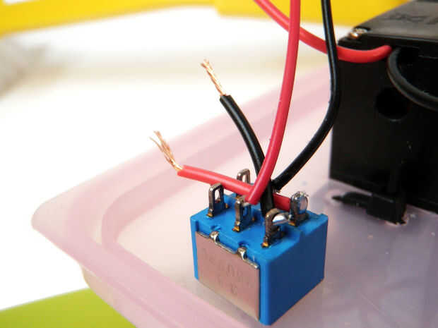 Nota: Si, cuando se encienda, el interruptor no está haciendo el motor mover hacia adelante y hacia atrás, retire las pilas. A continuación, desconecte los cables del motor y atrás los pines del interruptor que estaban conectados al.
