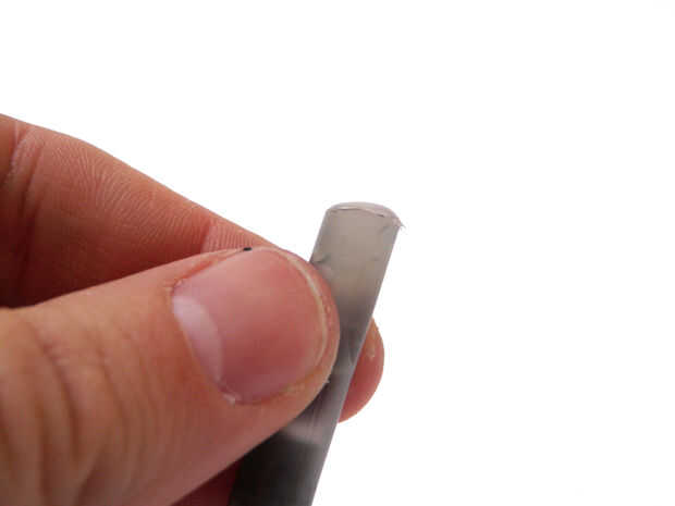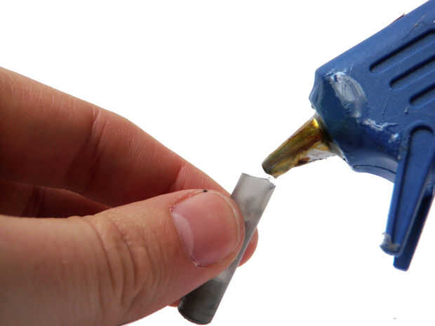 Llenar la tapa de la pluma con pegamento caliente y deslícelo rápidamente en el eje del interruptor. Tenga cuidado de no obtener ningún pegamento caliente dentro del interruptor. Esto podría evitar que trabajo.