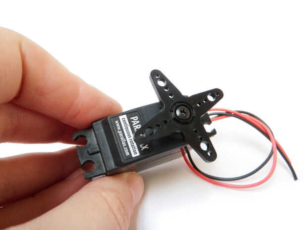 Taladre cuatro agujeros de 1/8" en cada esquina del cuerno del servo.