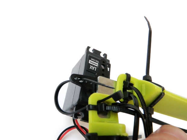 Para ayuda adicional, zip atar a los agujeros traseros sin usar el cuerno del servo, el anillo de montaje de la manija del cepillo.