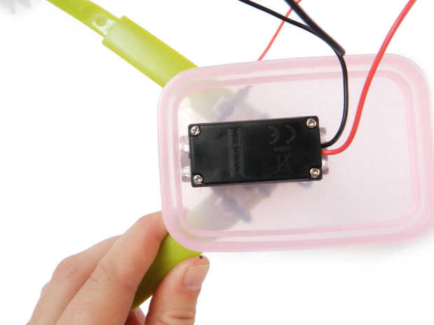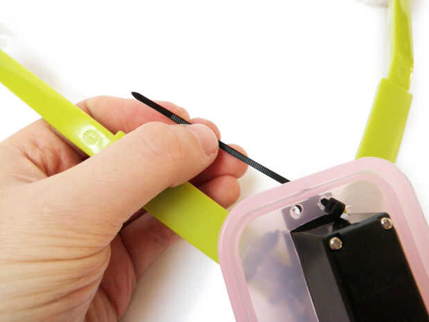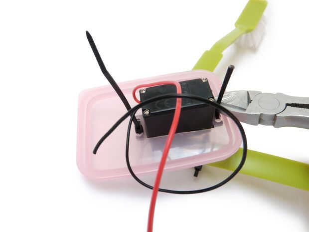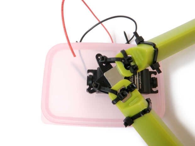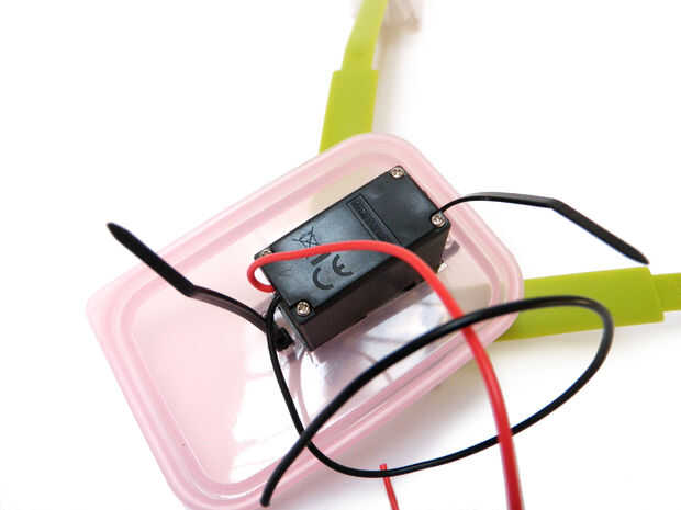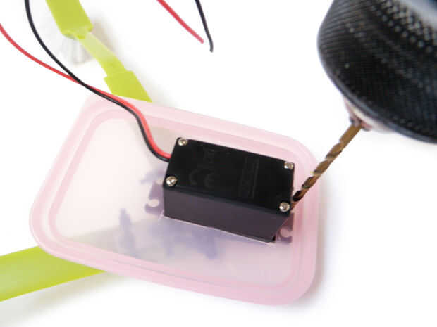 1/8" agujeros en el envase de plástico tapa eso línea de arriba con los agujeros de montaje del servo.
