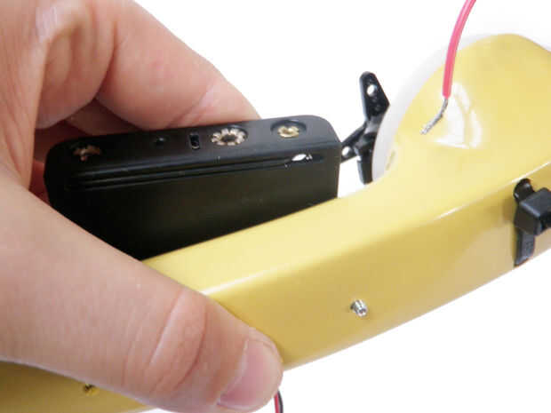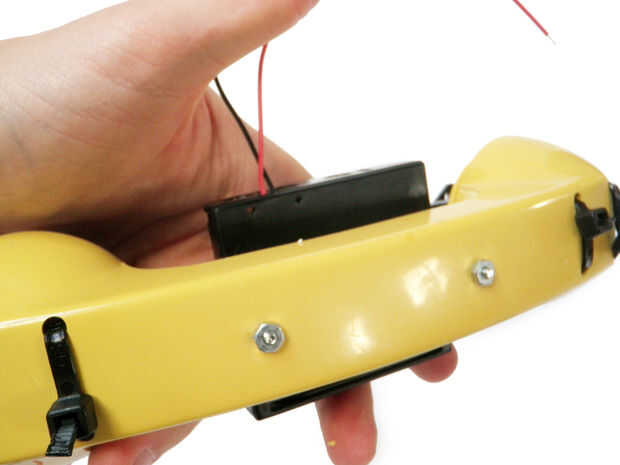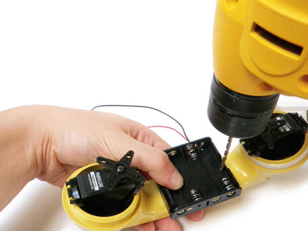 Taladre dos orificios de 1/8" en el centro del auricular que alinee con los agujeros de su soporte de pilas AA.