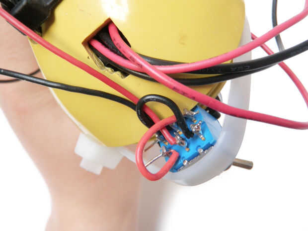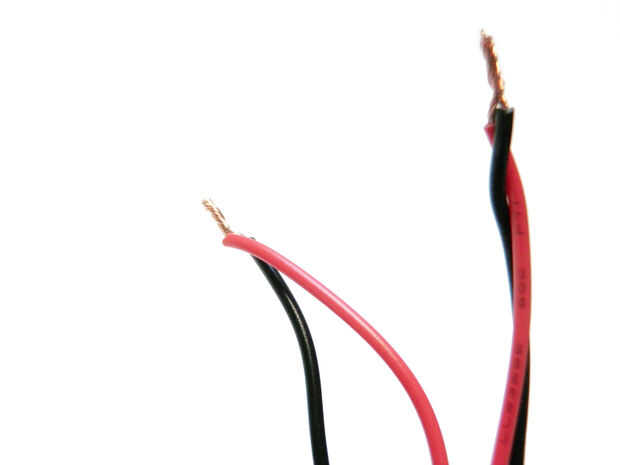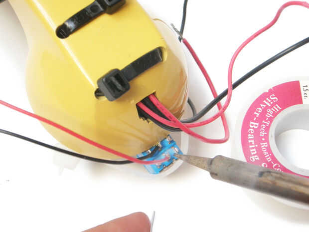 Por último, la soldadura de los pares de cables rojo y negro a cualquier conjunto de terminales exteriores. Por ejemplo, soldar un par en la parte posterior izquierda terminal y el otro par a la terminal derecha trasera.
