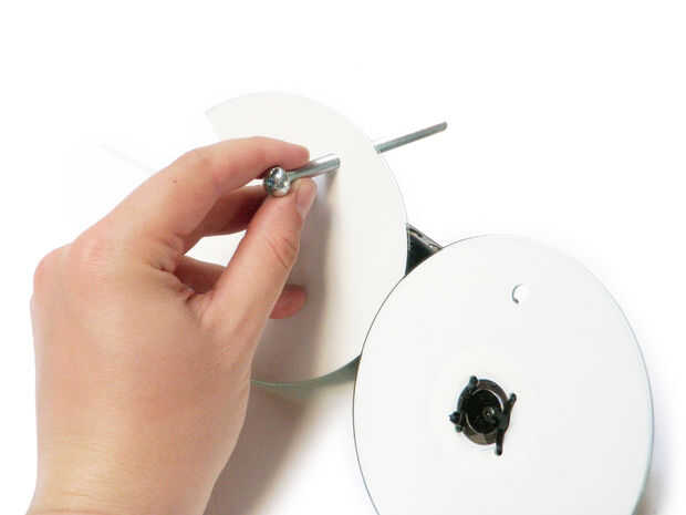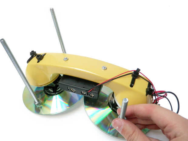 Pasar los pernos más cortos a través de lo CD con muescas, hacia el cuerpo del teléfono.