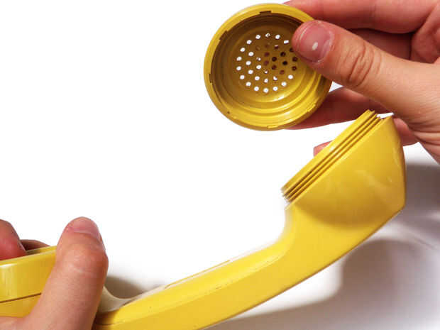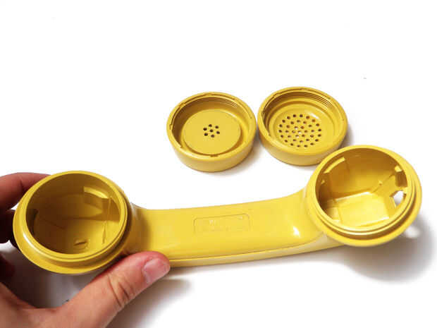 Retire las cubiertas desde el auricular del teléfono y saca el altavoz, micrófono y jack. Estos deben salir bien.