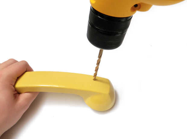 Taladro 4 agujeros en cada extremo del microteléfono como en la imagen.