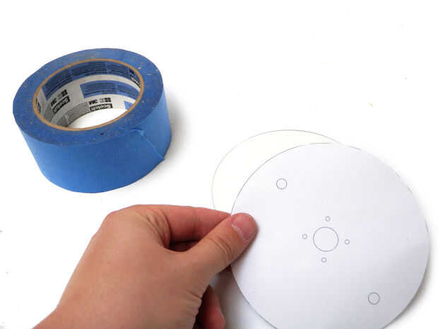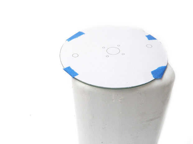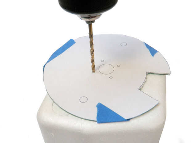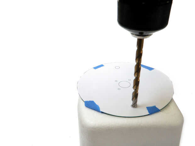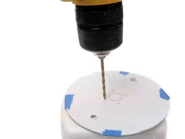 Para los cuatro orificios interiores más pequeños, perfore orificios de 1/8"(o lo que sea apropiado para tus lazos zip más delgados).