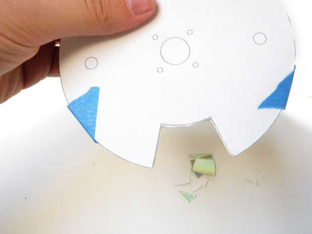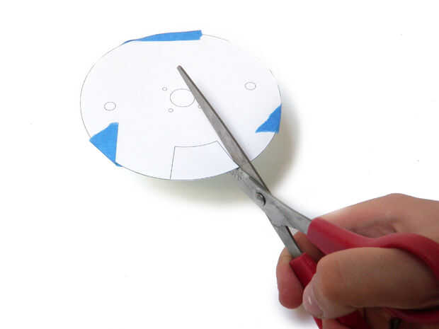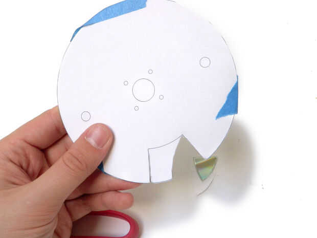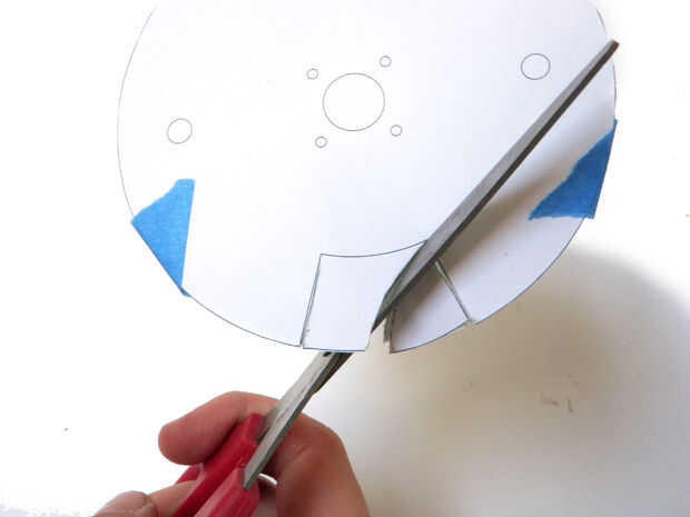 En el CD con la ranura exterior, cortar esta forma fuera de la CD con un par de tijeras de uso general.