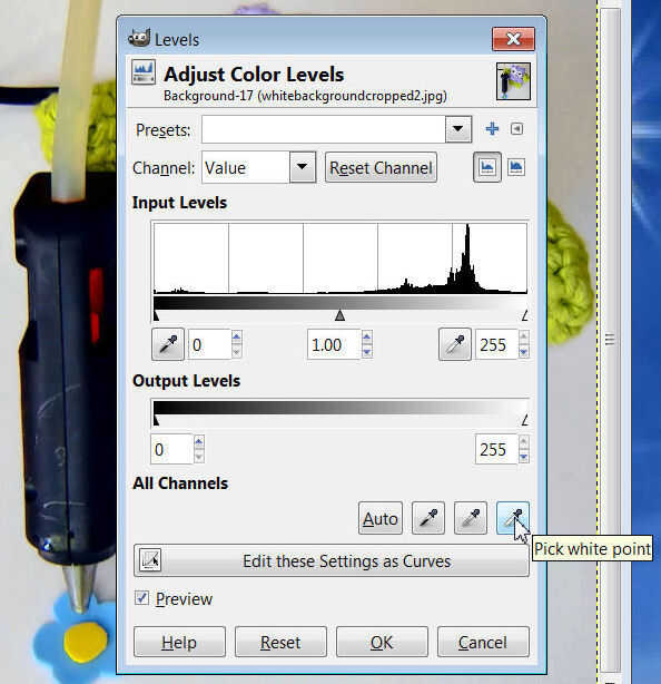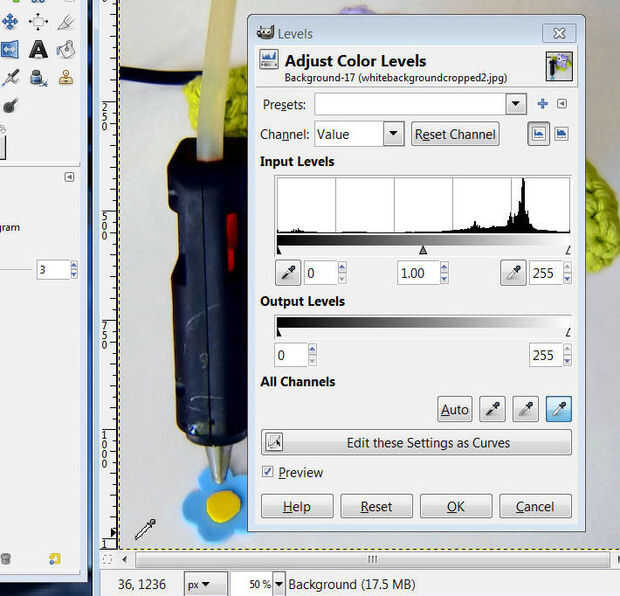 Si desea aclarar el fondo blanco más puede utilizar la herramienta de selección punto blanco en GIMP.