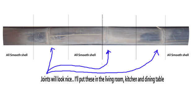 Recuerde planificar los cortes. Usted necesitará comprobar primero donde usted quiere cortar para hacer que usted obtenga piezas agradables fuera de él y menos residuos posibles. Es mejor cortar en longitudes ligeramente diferentes pero termina para arriba con buenas piezas de longitudes precisas pero piezas no tan agradables. Te cuelgan por separado para que nadie nunca verá las longitudes de todos modos...
