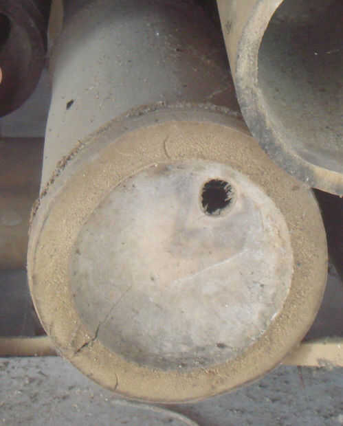 Hizo grietas con mi cuchillo y un martillo, dos grietas a la vez (como los tonos de la pared) pero esta el cuchillo se coloca en el centro del círculo y sólo a una determinada longitud, no todo el camino.