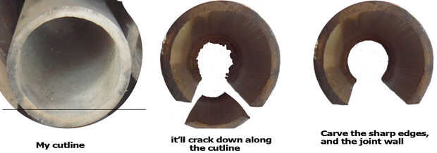 No es fácil de cortar bambú grande recta, sobre todo con una sierra de mano...