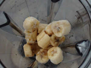 Poner los plátanos congelados y la vainilla en la licuadora y el genio de lejos hasta que esté espesa, cremosa y suave. Mantener un ojo en él, no tarda mucho tiempo para cambiar!