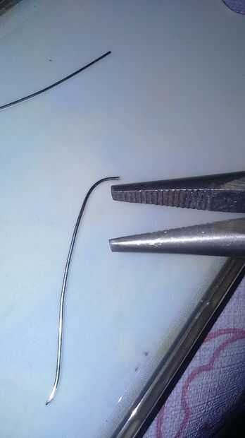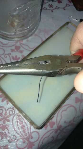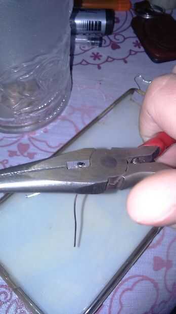 Tengo agujas de pendientes con los extremos, si tienen el mismo y no tiene azulejos, entonces usted puede dejarlos. Quería añadir azulejos, por lo que cortar extremos y curvaturas con pinzas, por lo cann añadir azulejos pequeños (puede encontrarlos en joyería y son muy baratos). No te olvides de cerrar el círculo que hiciste con pinzas para no caen sus azulejos.