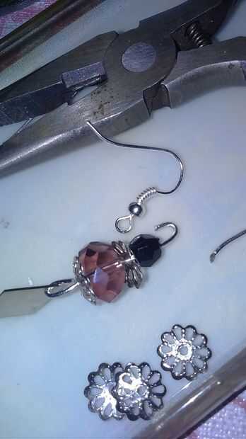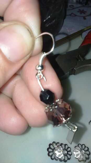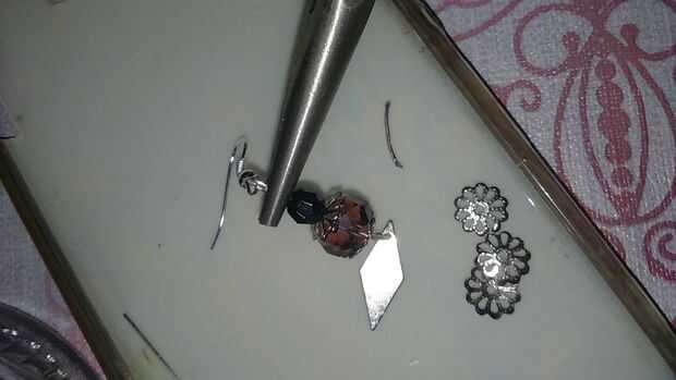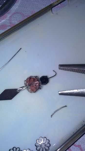Corte la parte que es medida. Hacer curvaturas y agregar ganchos de pendientes. No te olvides de cerrar el círculo para que ganchos no caigan hacia abajo. Sus pendientes están acabados. Espero que te ayudado y explicarlo bien. Disculpa si encuentras algún error en el texto. Aprender inglés, no es mi lengua materna, por lo que si usted tiene preguntas, intentaré responderlas correctamente.
