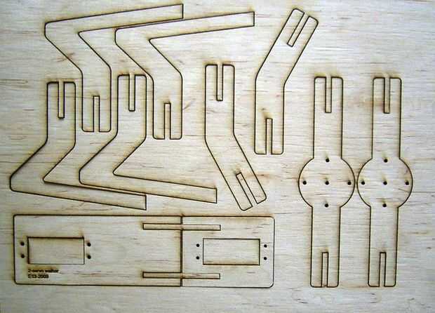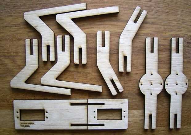 simpleWalker en mi blog. Para la versión de policarbonato en el blog he utilizado una sierra de banda en lugar de un cortador láser.