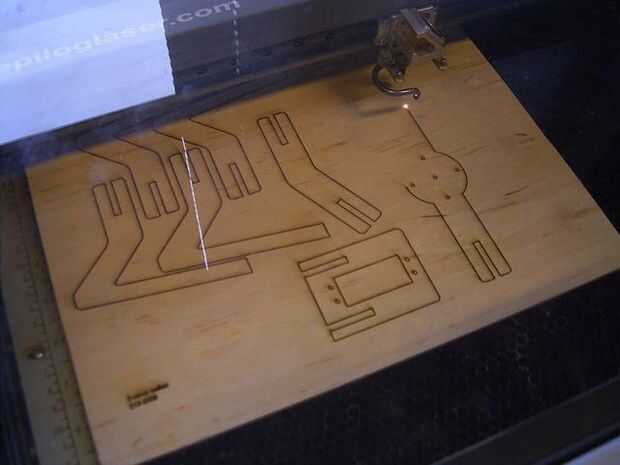 Las piezas pueden ser corte o aserradas de una hoja de 4 mm de material grueso, como el policarbonato vidrio o madera. En este ejemplo he utilizado contrachapado de abedul de 4mm, que se ha cortado usando un cortador del laser en un Fablab. El