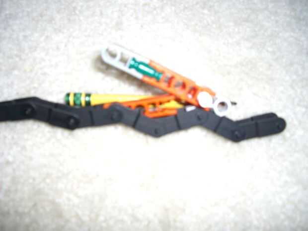 Cuadro 2: Acople a la cadena de siete malla tal como se muestra. Ellos están uno frente al otro y va en este orden; conector naranja, malla en blanco, elevación de la cadena.