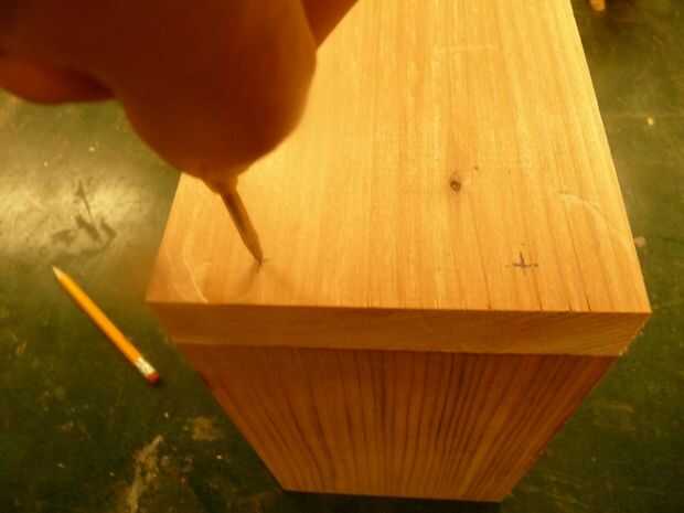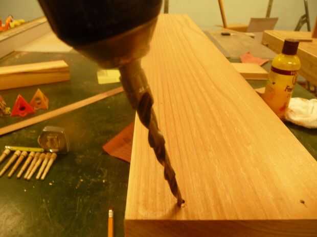Marcar donde quieres los pedacitos y taladrar los agujeros escalonados. Tenga en cuenta que yo soy de perforación en ángulo. Con los tacos colocados se oponen ángulos de ninguna manera pueden separar las piezas. Los tacos rompería antes de que dejaría de esta articulación. (Este truco también funciona con las uñas).