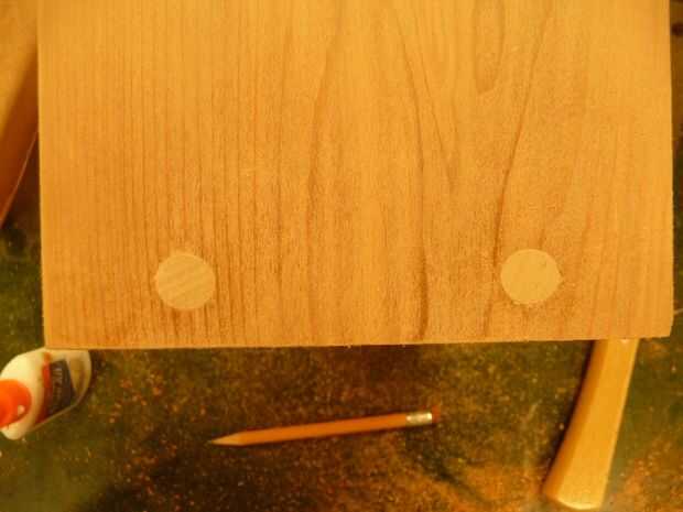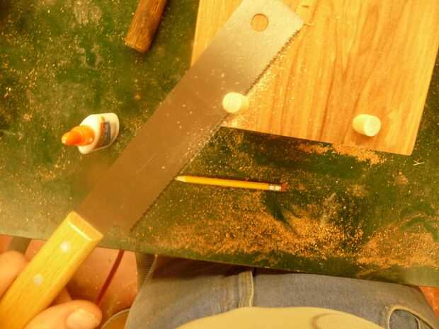 Use una sierra de corte al ras para recortar la espiga y luego lijar con lija de grano 100 hasta totalmente al ras.
