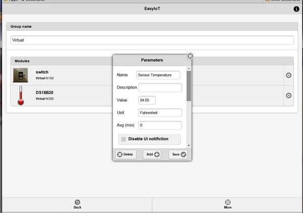 Así que abrí el servidor web de EasyIoT, fue en "Configurar", grupos, virtuales.