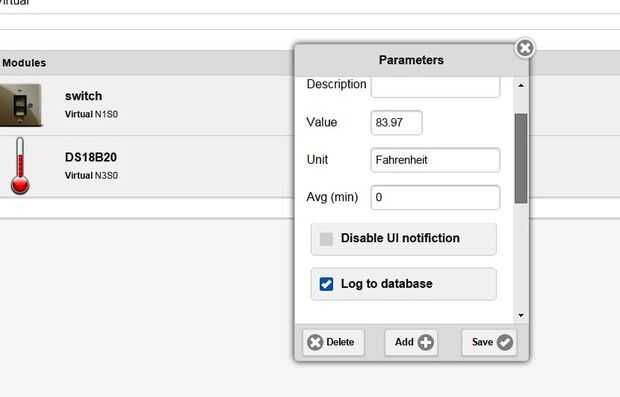 A la derecha de mi sensor DS18B20 allí es un icono de configuración, haga clic en él. Vea la foto. Se ha añadido unidad como Fahrenheit.