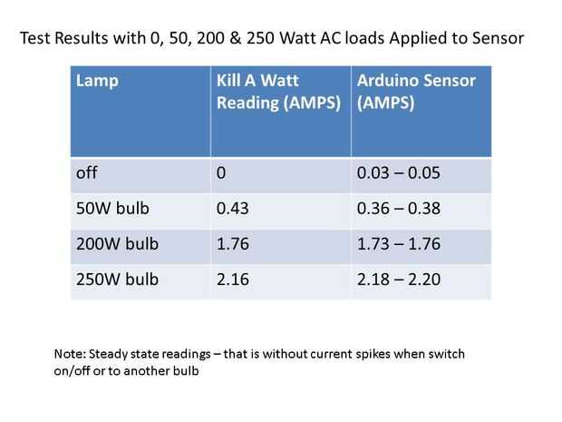 7. intente aumentar la CA de la carga - el Ardunio Sensor amperios medidos deben ir para arriba con el aumento de carga hasta el límite máximo del sensor de 5 amperios.