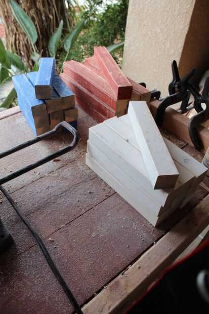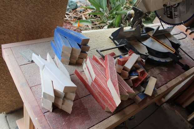 Cortar 10 piezas iguales para cada estrella. Para esta estrella he utilizado piezas de 11, 9 y 7 pulgadas.