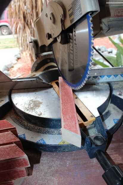 Poner un ángulo de 18 grados en el otro lado. Un estándar de sierra para cortar ingletes no está diseñado para cortar un ángulo pronunciado para una estrella. Referencia de la fotografía para ver cómo hacerlo. Probablemente no de la manera más segura, pero funciona para mí. ¡ Prepárate para hacer un montón de polvo de la Sierra!