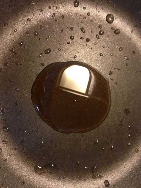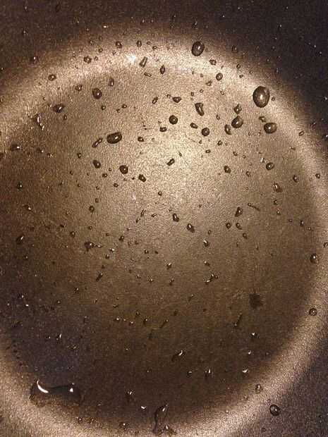 -Coger una sartén antiadherente y darle aproximadamente 1 cucharada de aceite de sésamo. Con un poco más de un 1/4 de cucharadita de sal espolvoreada.