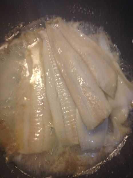-Cortar el pescado a tiras finas y ponerlos a un lado.