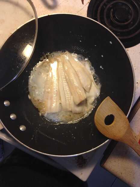 A menos que usted tomó su dulce tiempo hubiera descongelado el pescado ahora, evaporado sus líquidos y ahora está empezando a brown en la sartén.