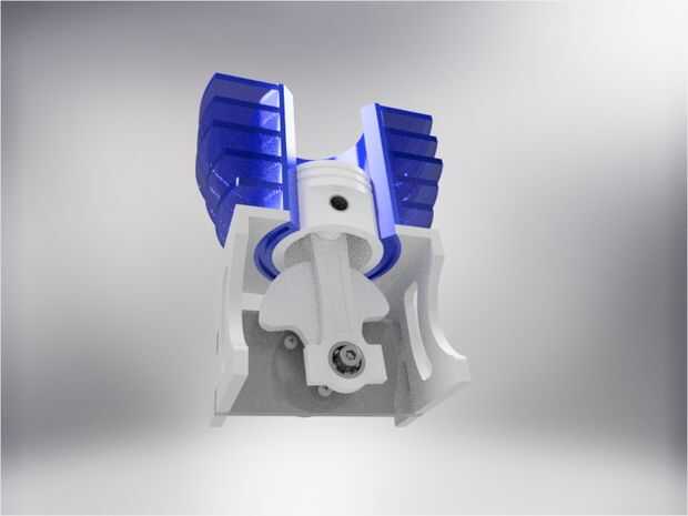 -Las partes laterales también son 5 mm de grosor y están muy abiertas a mostrar lo más posible de las piezas móviles dentro. En los lados superiores de las paredes laterales están también rompecabezas como las conexiones que son presión en la parte superior. La altura total de las paredes son de 70 mm que es lo suficientemente grande como para asegurarse de que las partes móviles no toquen nada. En las paredes son unas ranuras que se hacen para conectar el motormount a estas paredes. La ubicación de estas ranuras depende del tipo de motor que utilizas para el cigüeñal. Más importante es la longitud del eje del motor. La punta no debe ir más allá del del cigüeñal o bien este eje bloqueará el brazo de pistón se mueva.