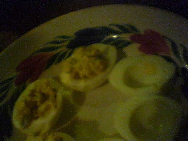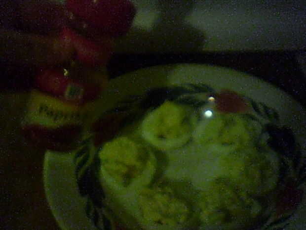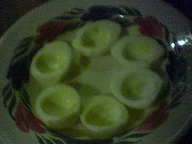 Encurtido en trozos más pequeños-de-un-pea de picar y añadir a la mezcla de yema de huevo.