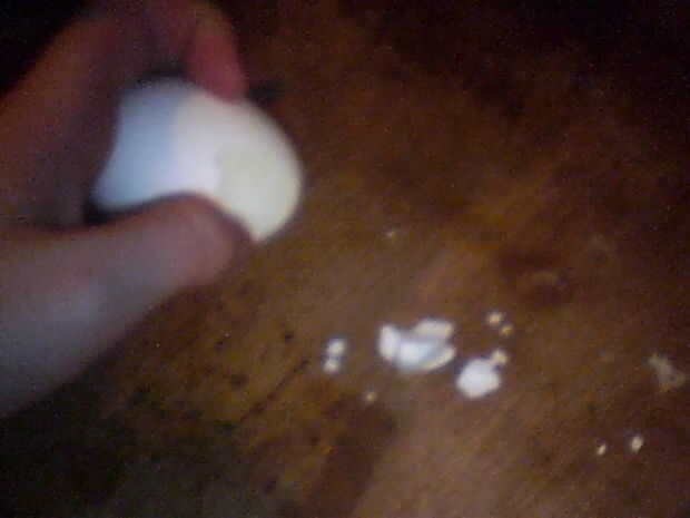 Romper un huevo y pélalo. Si hay una membrana alrededor de la blanco, eliminarlo. Repita con los otros huevos y descarte las cáscaras bien o encontrar un Instructable sobre cómo reutilizarlos.