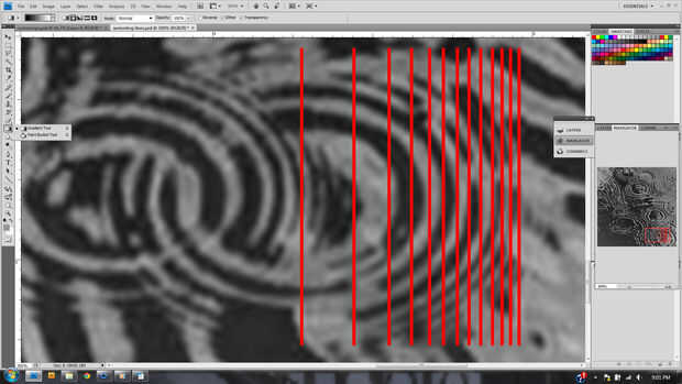 Paso 2: Poner esa imagen en Photoshop y dibujar líneas verticales en los picos y valles de las olas.