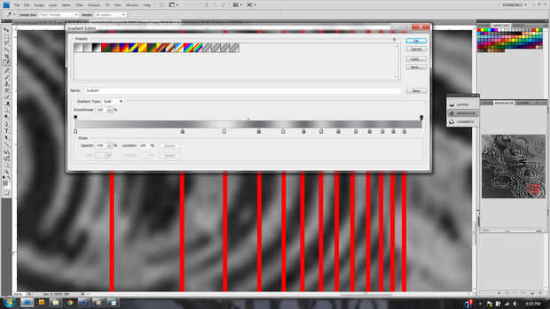 Paso 5: Haga clic debajo de la barra de degradado para añadir más muestras de color. Añadir tantas muestras como tienes líneas de pico y Valle.