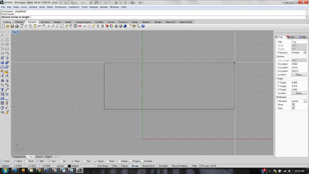 Paso 26: En la vista superior, la ubicación de la esquina de inicio de entrada y tipo 12" para la longitud del lado. Es arbitraria, ya que podemos escalar más adelante.