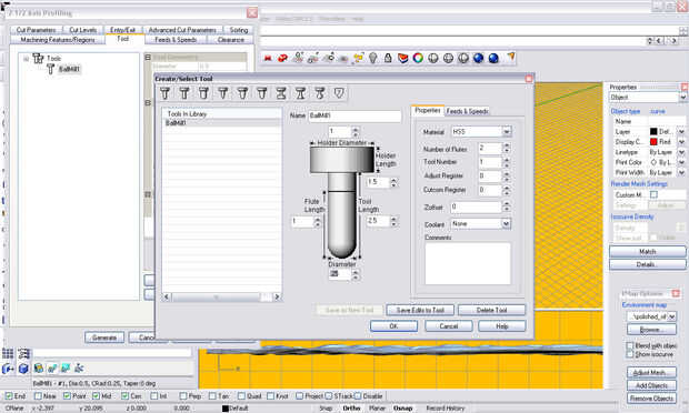 Paso 39: Primero necesitamos a RhinoCAM qué herramienta es la celebración de su máquina. Seleccione la herramienta de la lista, o hacer su propio. Entrada los valores apropiados y haga clic en nueva herramienta.