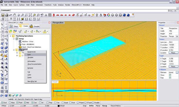 Paso 54: Cero de la máquina a la acción basada en donde configurar 0,0,0 en Rhino. Si no tienes una máquina CNC se puede ir a http://www.grunblau.com/CNCBMO.htm para obtener información sobre cómo construir uno:) luego continuar a paso 55