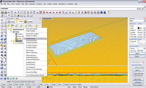 Paso 34: Abrir el cuadro de diálogo de las operaciones de mecanizado en el menú de RhinoCAM